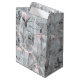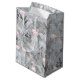 Den här presentsäcken har en underbar mönster av flamingon omgiven av rikligt tropiskt löv och orkidéer i varmt grått och rosa. Du har fått en valfri etikett som innehåller ditt namn och monogram eller annan text. Sök i ID868 för att se andra produkter med den här coolan, tropiska mönster.