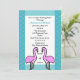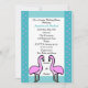 Ett par vackra flamingon på blå rosa anger tonen för en roligt par temat möhippa på denna underbara inbjudan till möhippa i flamingo par. Copyright henishouseofpaper