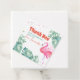 Dessa tropiska tack-kort lägger till den perfekta känslan till dina partygavor. Denna moderna design har med min originella akvarell rosa flamingo och botaniska palmbladskonst. Orden är satta i en rolig och lekfull script-typografi. Anpassa färgerna på prickarna och texten till vad som passar din stil. Perfekt för en tropiskt tema-baby shower, sommarens födelsedags-poolparty, tjejvecka och mer! För att se den matchande sviten besök www.zazzle.com/vginvites