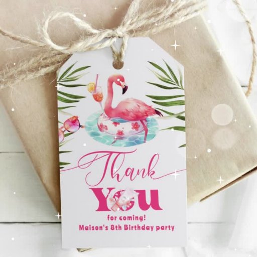 Flamingo poolparty rosa flick födelsedag presentetikett