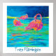 En ursprunglig vattenfärgsmålning av Anne Ormsby av tre flamingos adderar denna färgstarka poster.
