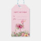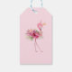 En söt exotisk rosa flamingo med krona och blommor i ljus rosa bakgrund