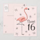 Flamingo Rosa "Sweet 16" lodrät vycard Vykort