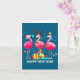 Flamingo Santa mössa Gott Nytt År Ljus Långärmad Kort