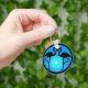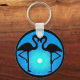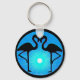 Originalgrafik av två flamingosilhuetter framför en vacker blå solnedgång. En mycket unik och attraktiv nyckelring som skulle vara en underbar gåva till vem som helst.