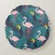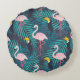 Flamingo, toucan: tropiska löv mönster rund kudde