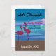 En design som tittar fram emot flamingning. Ett par flamingos i lycklig vid skymningen på stranden i en vattenfärgsflapp. Rand av blått, brunt och lila-rosa på kuvertets insida. Byt ut bilder när du anpassar dem. Matchande produkter är tillgängliga. Överför den här designen till andra objekt. Kan vara till för en uppvärmning av party eller annat tillfälle.