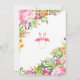 Vacker tropisk bröllopsinbjudan med akvarellillustration av två rosa flamingos, livfulla blommor och falskt guldconfetti. Denna anpassningsbara inbjudan är perfekt för sommar / tropiska / hawaiianska / luau-tema bröllopsfiranden!