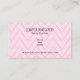 Affärskort med modern professionell med grafik som illustrerar en rosa flamingo. Texten säger: Flockande väv. Hand plockade rosa Chevron rand i bakgrunden.