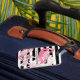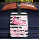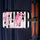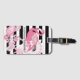 Produktdesignen har en flamingo med kaleidoskopisk paisley mönster i skuggor av rosa över svart och vitt rand. Denna tropiska fågeldesign med personlig gör ett modernt och unikt bagagemärke.