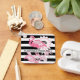 Produktdesignen har en flamingo med kaleidoskopisk paisley-mönster i skuggor av rosa över svart och vitt rand. Denna tropiska fågeldesign med personlig gör en modern och unik nyckelkedja.