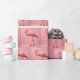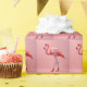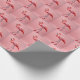 Rosa flamingo med röda högklacksskor på vit bakgrund.