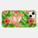 Mönster som är färgat med vattenfärgen monstera löv, hibiscus blommor, flamingo blommor och fåglar