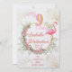 Invitation in pastel colors. Invitation from Flamingo, tropical desing. Invitation with flowers for children's birthday. Editable. With the same design on the back.
