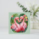 Skicka lite seriös sommar kärlek med detta tropiska flamingo gratulationskort, med två eleganta rosa flamingos som bildar ett hjärta med sina halsar - omgivna av livfulla hibiskusblommor och frodig grönska i en djärv design inspirerad av hawaiisköjor från 1950-talet.
