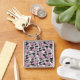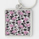 Flamingos och hibiscus-blommor fyrkantig silverfärgad nyckelring