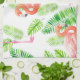 Flamingos och tropiskt löv är ett sömlöst mönster som är färgat med inslag.