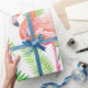 Flamingos och tropiskt löv är ett sömlöst mönster som är färgat med inslag.