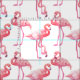 Handmålade vattenfärgade flamingfåglar, sömlösa mönster