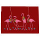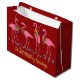 Tropiska flamingor julklappar i stora storleka och mörk röda färg. Den här pappra väskan har fyra flamingodesign med stjärnfisk. Lägg till en enda ordalydelse i anpassningsbarna på framsidan. Exempeltexten lyder "Varma semesterhälsningar". Byt till vad du vill!