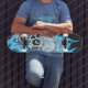 Den roliga skallen som omges av blått, flammar är en färgrik skalle som ser underbar på skateboards.