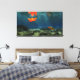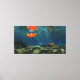 En ljusstark orange löv sjunker under en flodbäcke, med solstrålar som faller genom vatten till sten på bädden.
