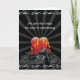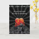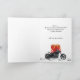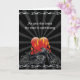 Slå vägen med ett hälsningskort för paret i bröllop som handlar om den öppna vägen och deras cykel(er). En grafisk motorcykel med skisser accentueras av ett flammande hjärta mot en rik svart grungande bakgrund med en överkant och grund gräns av tunna kromlågor. Motorcykelbilden upprepas på insida för att understryka texten. All text är helt anpassade. Tillgängligt med matchande produkter.
