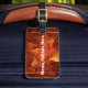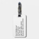 En unik orange- och rökfläck över en svart bakgrund dekorerar den ena sidan av den här mallen för bagagetapp. Märkrn tillbaka är där du kan lägga till viktig information. Fyll i fälten Mallen med ditt namn, initialer och/eller klicka på Anpassa den! om du vill välja ett teckensnittsformat, storlekt och färg. Vid anpassning väljer du en annan färg än vit för baksidan under Redigera och sedan Bakgrund.