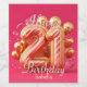 Fira 21 i stil med denna glamorösa vin-märkning! En djärv guld och en rosa-randig "21" är i centrum, omgiven av skakande guld-ballonger och mousserande stenar för en luxe touch i extra. "Grattis på födelsedagen" skiner i skript för elegant, med utrymme för att anpassa namn för personlig beröring. Perfekt för att förvandla flaska till en viktig milstolpe!