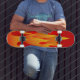 En bild av hetten flammar på en skateboard.