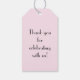En uppsättning med tio rektangulära märkre med en silhuett av en flapper med en molnhatt och en lång rad vita pärlor och med en lång cigaretthållare på rosan. Baksidan är rosa med anpassade text. Visa hela samlingen av favoriter och presenter för 20-årsjubileum i SPECIELLA TUCHES | Avsnittet Party favors.