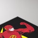 Kolla in Blixten som löper över sin blixtnedslag logotyp med ord "Time for A Hero" som följer efter honom.