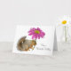En ekorre som håller upp en stor rosa blomma. Anpassa detta födelsedagskort.