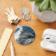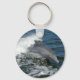 Den här nyckelringen har ett foto av en delfinhoppning med en våg i havet.