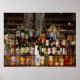Detta är en poster av ett bild med olika typer av alkoholflaskor staplade tillsammans