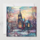 Ett charmerande platt kort med en vinter-kyrka i nedfläckad glas stil.