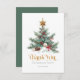 Express your gratitude this holiday season with a heartfelt thank you card adorned with a stunning watercolor Christmas tree, complete with a dazzling gold star. The elegant gold-toned retro typography adds a touch of sophistication to your message of appreciation. Share the joy of the season with your guests by sending them this charming Christmas thank you card.