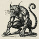 En surrealistisk humanoid leopard står frusen mellan instinkt och tanke och blandar mänsklig spänning med djurlik alerthet. Renderad i dramatiska gravyr linjer, fångar den en märklig balans av rädsla, nyfikenhet och rå energi.