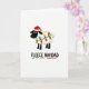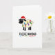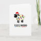 This festive illustration captures the holiday spirit with a cartoon sheep wearing a Santa hat, draped in colorful Christmas lights on a white background. The sheep has big, expressive eyes and a simple face that looks warm and friendly. The phrase "FLEECE NAVIDAD" is written in a fun, handcrafted font below the sheep, with some underlines in red, blue, and green. The colors of the lights are ruby red, sapphire blue, emerald green, sunny yellow, and regal purple, making a joyful garland on the sheep. The design is clean and neat, keeping the focus on the cheerful scene and clever pun. This card is great for spreading holiday joy with its simple yet delightful design. 🎅🏼🎄🎁