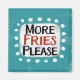 "Fler fries, tack" är en roligt textdesign med en vit accentform omgiven av vita, vita, vita, vita, texturerade punkter.