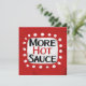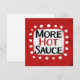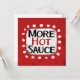 "Mer Hett Sauce" är en söt textdesign i rött med svart och röd text, tillsammans med en vit accentform och vita texturerade vita prickar runt den.