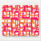 Den här musmattan har en modernt design i mitten av århundradet av öppna rektanglar i rosa över öppna rektanglar i orange.