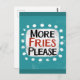 "Fler fries, tack" är en roligt textdesign med en vit accentform omgiven av vita, vita, vita, vita, texturerade punkter.