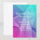 Skarp och modern Spara datum-anmälan för bröllop med ädelstensnyanser med en flerfärgad (blå, lila, rosa och turkos) funky geometrisk triangulär bakgrund. Denna snygga och enkla design är ett unikt val för att tillkännage ett modernt bröllop. Lätt att anpassa med dina bröllopsdetaljer. Klicka på "Anpassa" för att hitta fler anpassningsalternativ.