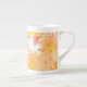 En mjuk och feminin benvävnad china mugg med en vattenfärgsmålning av olika färgad blommor.