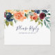 Detta flerfärgade eleganta blomster meny val rsvp postkort är perfekt för ett modernt bröllop. Designen har snyggt handritade buketter av rosa, rosafärgade, gula, vinröda, röda, indigo blommor och gröna bladverk, som inspirerar till naturlig skönhet.
