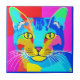 Keramiskt plattor i en retro, popart stil, cat porträtt i levande, primär färg av magenta, cyan, blått och gult