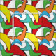 Denna roligt grafik mönster, som påminner om halvsekelns moderna utformning, har uppdaterats med en livlig palett av olika färg som skisserats i svart. Anpassa enkelt bakgrunden färg till kostym i stil.