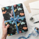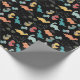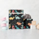 Flerfärgade dinosaurier på svart bakgrund presentpapper