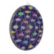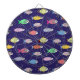 Flerfärgade fiskar på marinblå pilkastningstavla.
